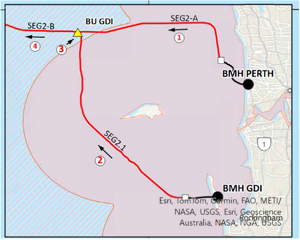 The Pater Faber will be in Fishery waters installing cable segments SEG2-A, SEG2.1 and SEG2-B (see map above) between now and March 2026. Fishers are requested to observe a 250 m or 1x Water Depth (whichever is greater) exclusion zone around the vessel to allow safe cable laying operations and reduce risk of loss or damage to fishing gear. The vessels will transit between segments at around 11kn.